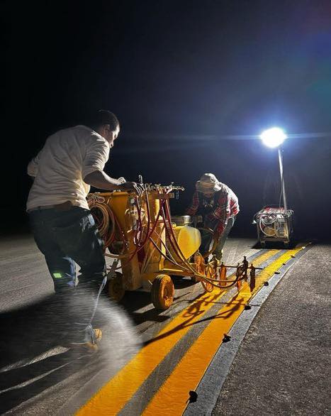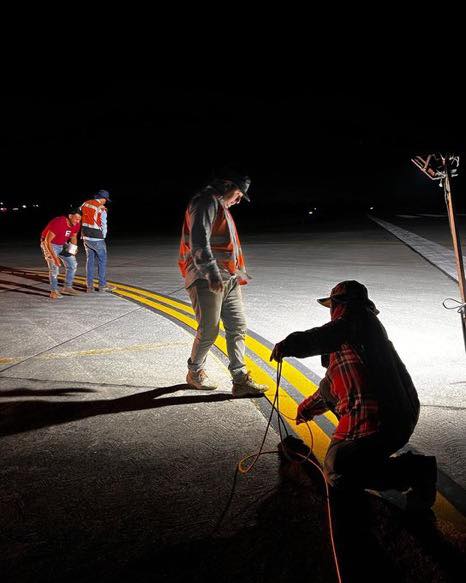 En ese sentido, trabajadores del Departamento de Infraestructura de la DGAC y de la sección de mantenimiento del aeropuerto llevan a cabo labores de pintura en la pista.