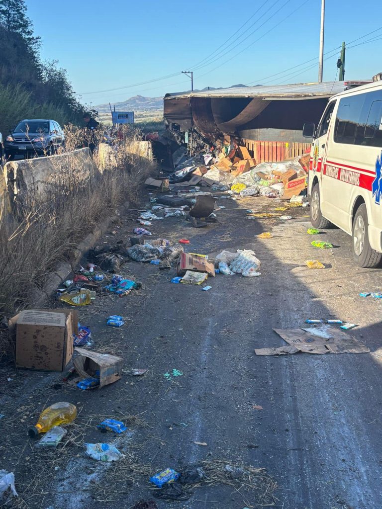 Curiosos que llegaron a la curva del chilero se llevaron producto de la canasta básica que transportaba el camion accidentado