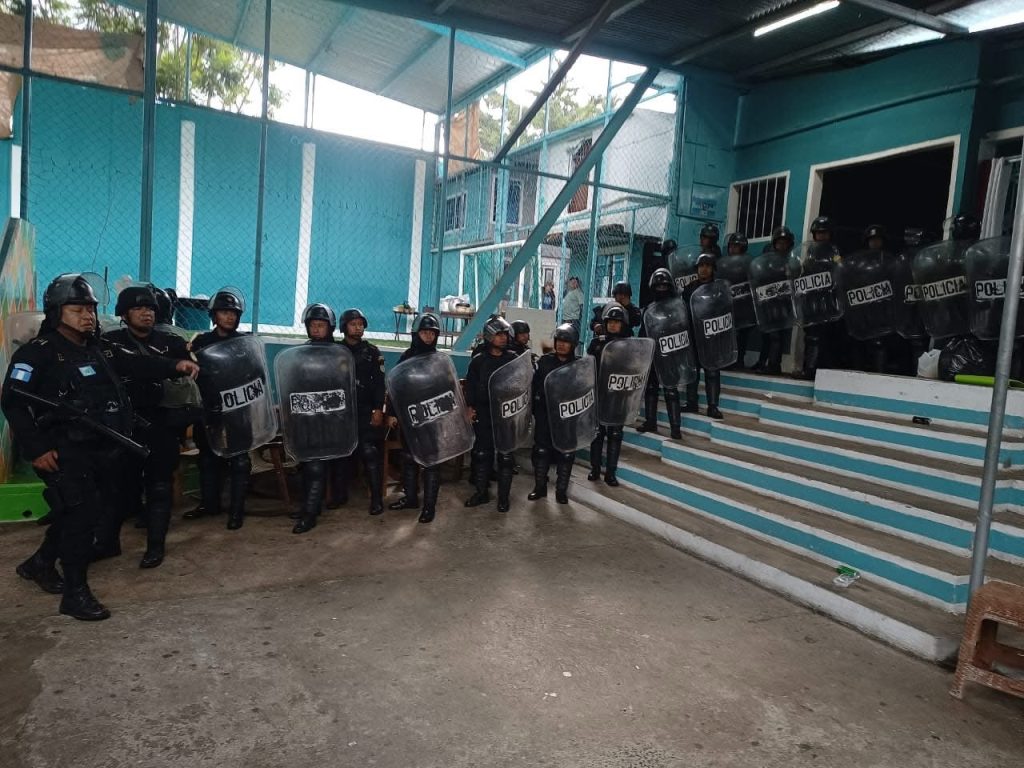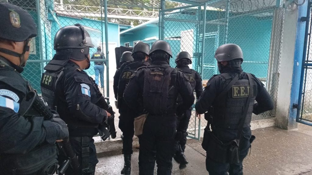 La Policía Nacional Civil PNC a través de sus unidades FEP, GAR, SGAIA y diferentes comisarias ingresa al anexo del Centro Carcelario Pavoncito, ubicado en Fraijanes, donde se encuentran 248 privados de libertad líderes y miembros activos de la Mara Salvatrucha, para verificar que no objetos prohibidos.