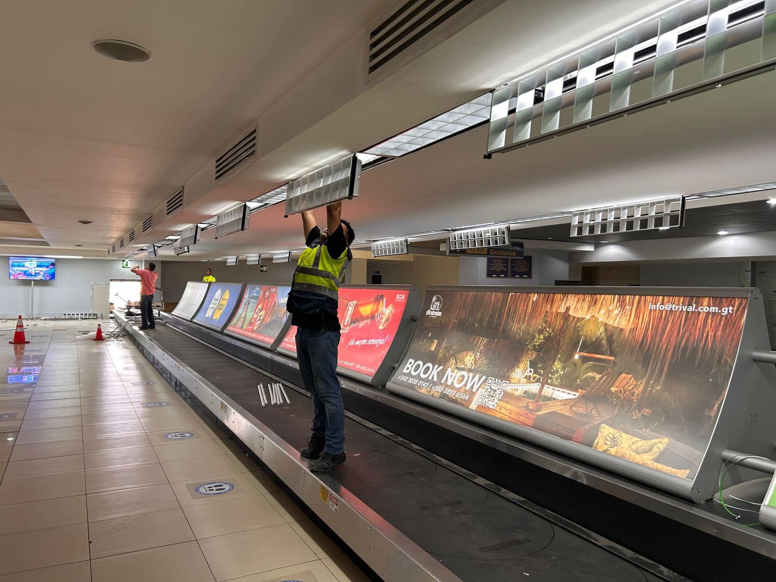 AL RESCATE DE LA AURORA…Personal de la Dirección General de Aeronáutica Civil DGAC realiza trabajos de mantenimiento y reparación de carruseles de reclamo de equipaje en el Aeropuerto Internacional La Aurora. Estos trabajos no se realizaban desde la remodelación del aeropuerto en 2,007.