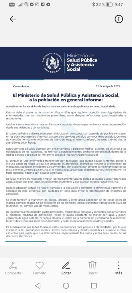 Es fundamental que todos tomemos estas precauciones para prevenir enfermedades, por lo que instamos a las autoridades locales, líderes comunitarios y demás entidades a sumarse a estos esfuerzos para evitar que nuestras familias, especialmente los niños y niñas sean presas de las