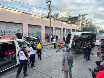 Un fuerte accidente de tránsitos entre un camión y una camionetilla se registró esta mañana en la 10 calle y 9 avenida de la zona 1 capitalina, frente al Congreso de la República.