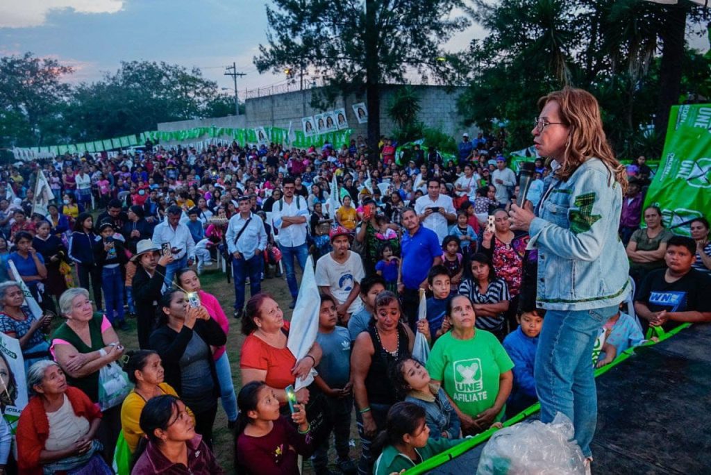 La candidata de la Unidad Nacional de Esperanza (UNE), indicó «quiero que sepan que los proyectos solicitados como el centro turístico, la entrega de abono, fertilizante, la creación de avícolas y la búsqueda de mayor apertura para la comercialización de sus productos será una realidad, porque si algo me sobra a mí es voluntad política para sacar adelante a Guatemala».