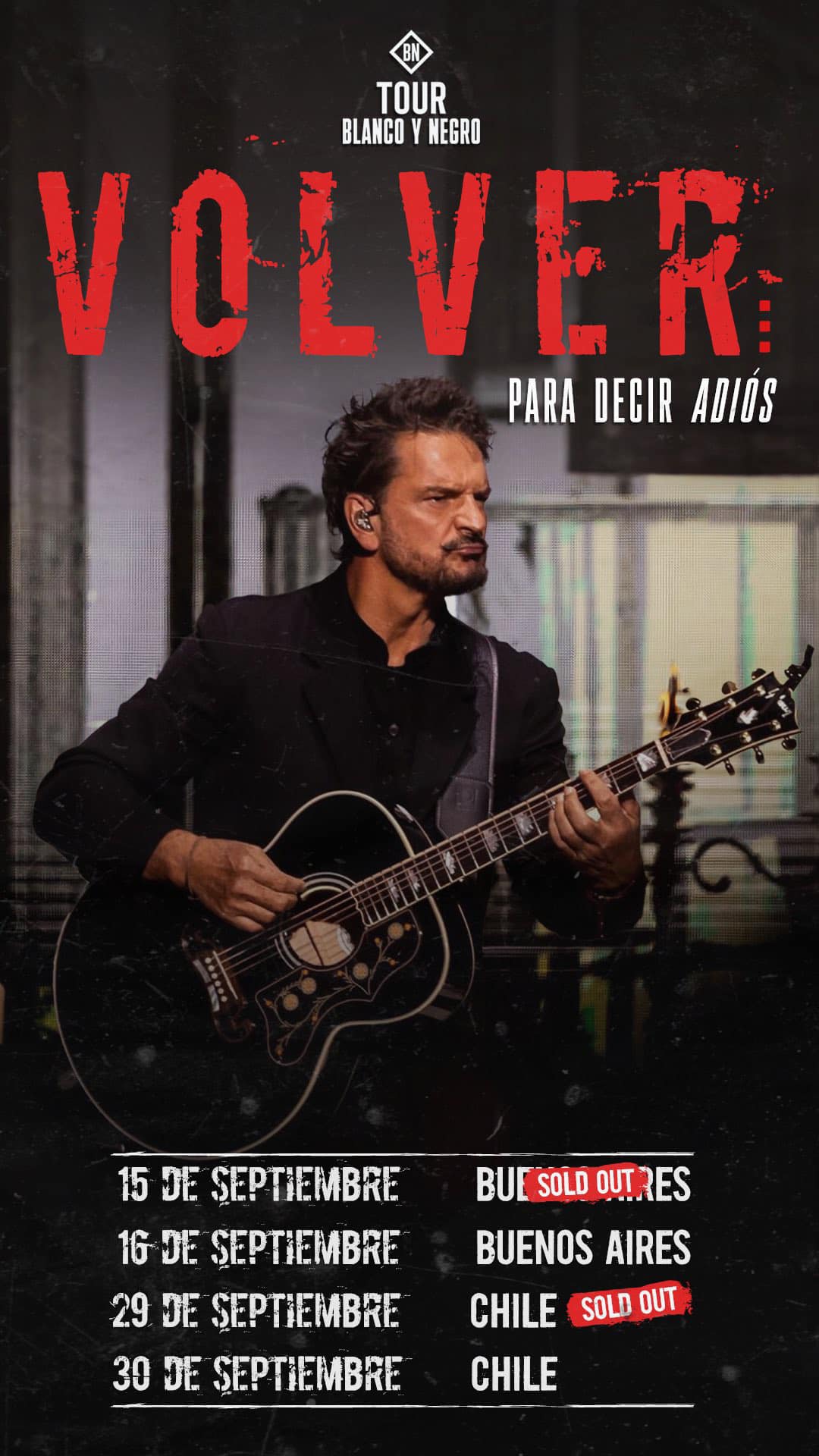 El Cantaautor guatemalteco Ricardo Arjona suspendió los conciertos de su tour Blanco y Negro “Volver Para Decir Adiós ” a realizarse este 15 y 30 de septiembre en Argentina, Chile y Bolivia por problemas de salud según lo comunico Metamorfosis