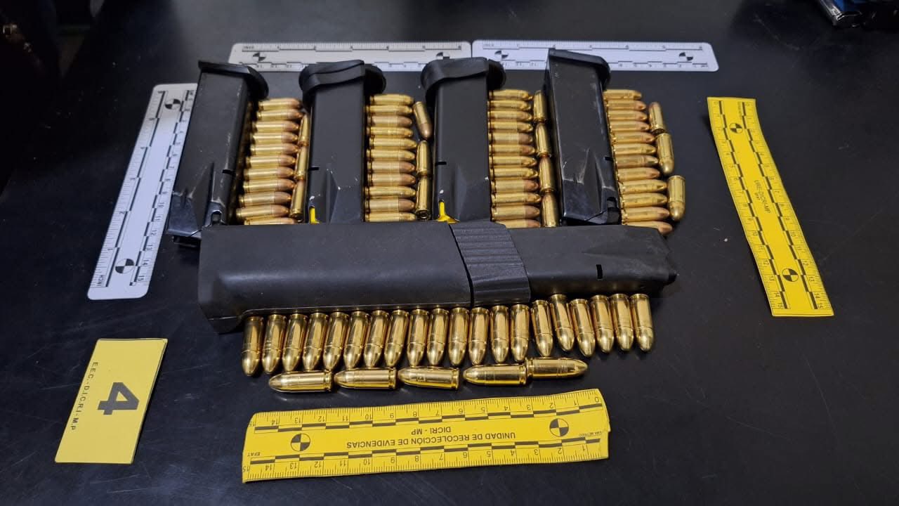 En el centro de detención preventiva para hombres El Boquerón, en Santa Rosa, donde están recluidos 301 terroristas mareros salvatrucha fue requisado hoy por policías en apoyo al Sistema Penitenciario, en la requisa se ha incautado tres pistolas Taurus, Pietro Beretta y Glock calibre 9mm. una de ellas con reporte de robo del 7 de julio del año 2025, 10 cargadores y 120 municiones calibre 9mm.