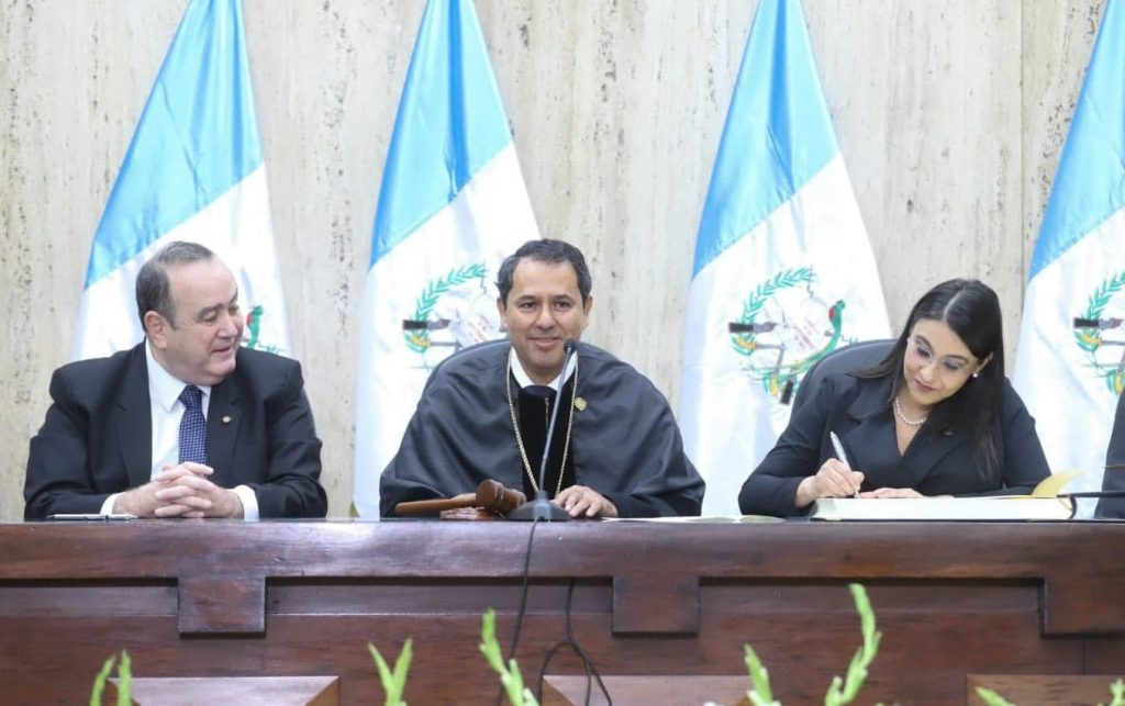 El presidente de la República Alejandro Giammattei y la presidenta del Congreso Shirley Rivera participaron este lunes en la toma de posesión del presidente del Organismo Judicial (OJ) y de la Corte Suprema de Justicia (CSJ) período 2023-2024.