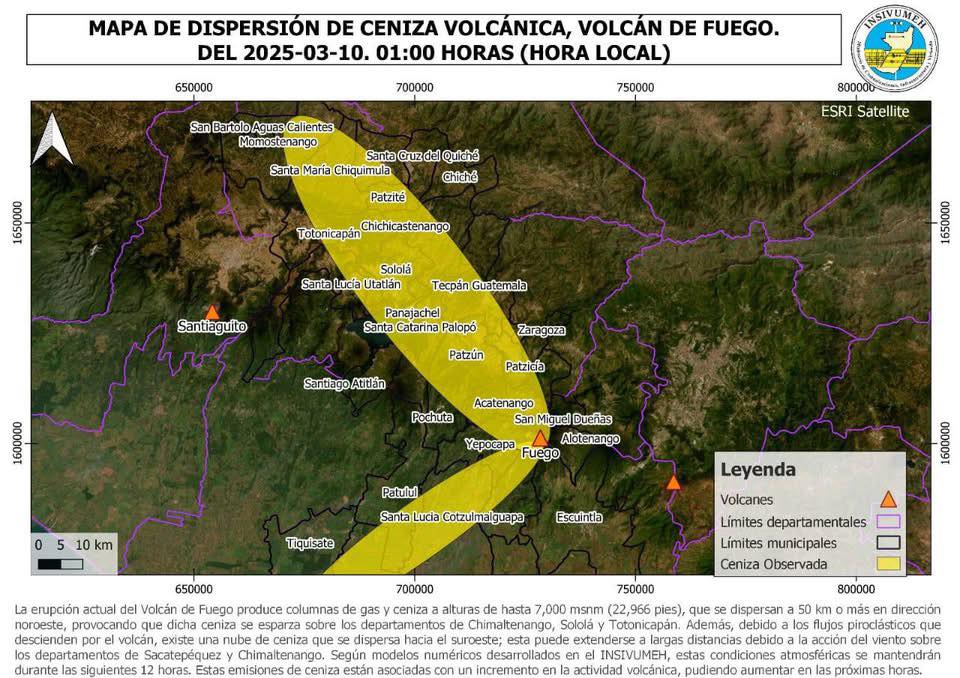 De acuerdo con el Boletín Vulcanológico Especial BEFGO 006-2025 emitido por el INSIVUMEH, el Volcán de fuego registra descenso de flujos piroclásticos de características débiles y moderadas hacia las barrancas Las Lajas y El Jute, mismos que generarán caída de abundante ceniza.