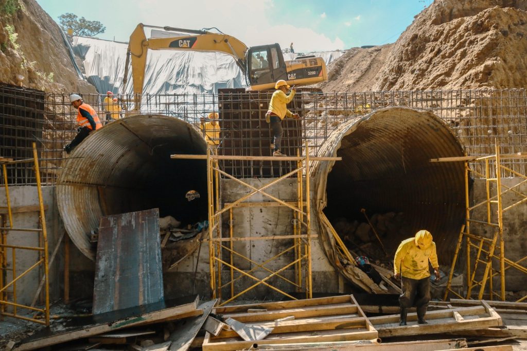 Mientras en el kilómetro 45, los trabajos incluyen la excavación de canales de entrada y salida de alcantarillas, la conformación de taludes y el inicio de la construcción del cabezal de entrada, la losa de bóveda y los diques de concreto.