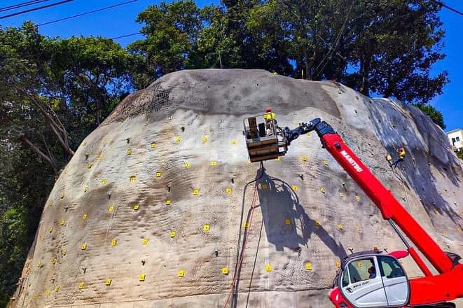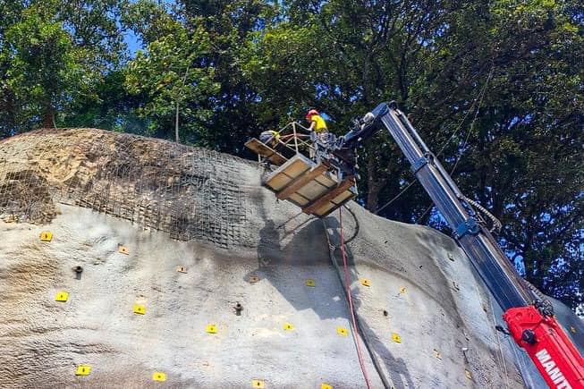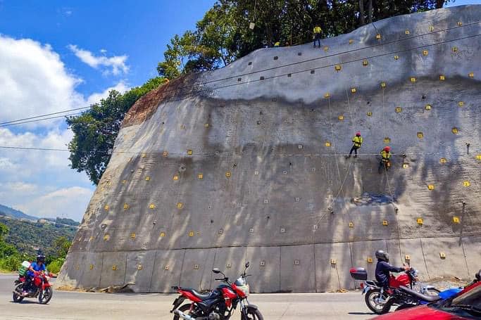 El ministerio de comunicaciones avanza con el muro de suelo enclavado a la altura del Kilometro 18.4 de la ruta entre El Milagro, Mixco y Ciudad Quetzal, San Juan Sacatepéquez