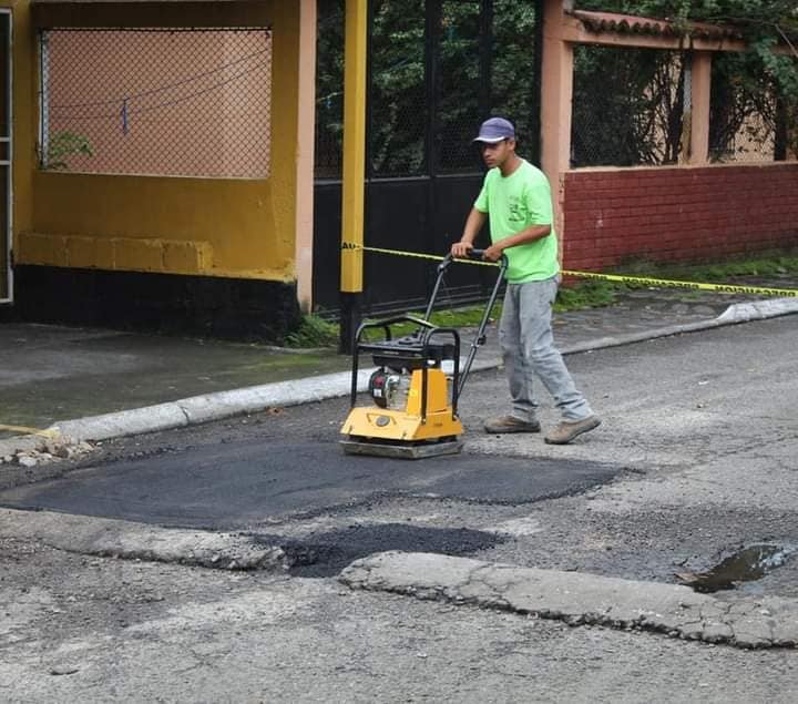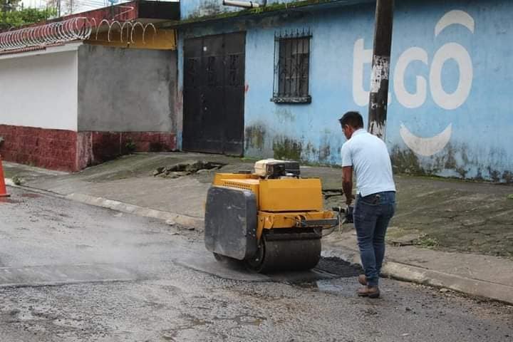 Este día iniciaron los trabajos de recuperación de la capa asfáltica en la 1ra calle y 20 avenida sección «A» de Colonia Hunapú Escuintla.