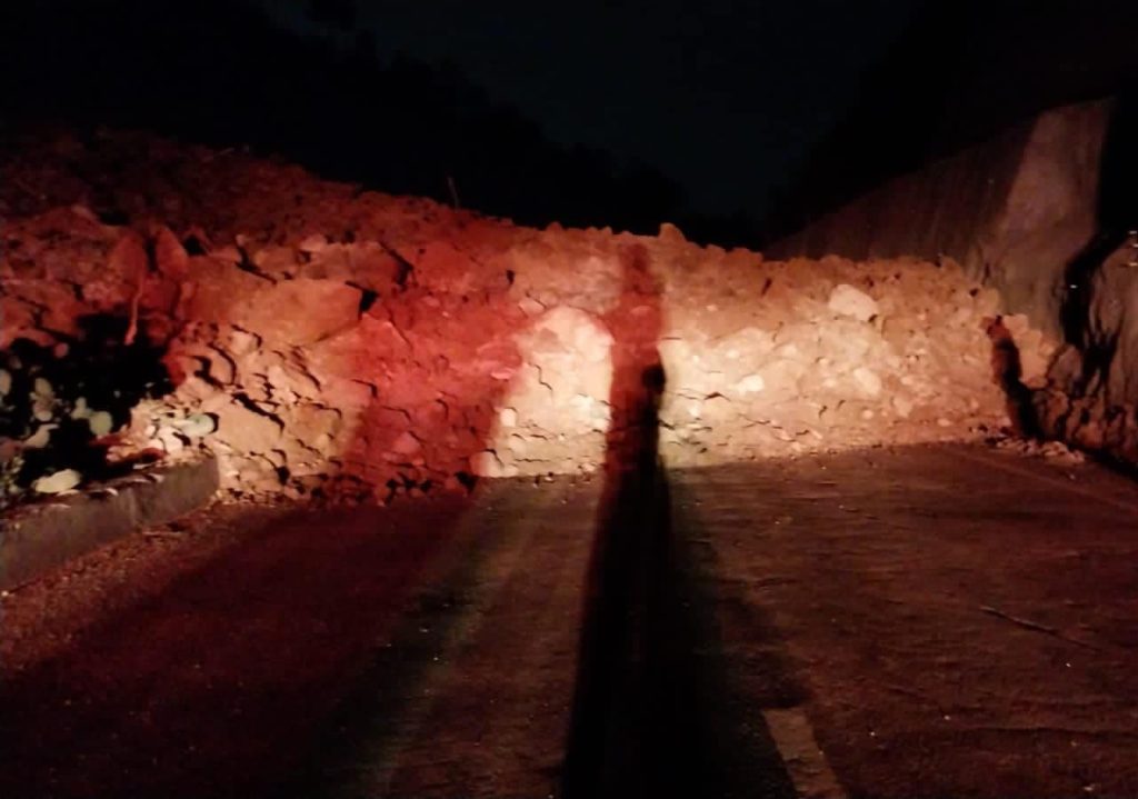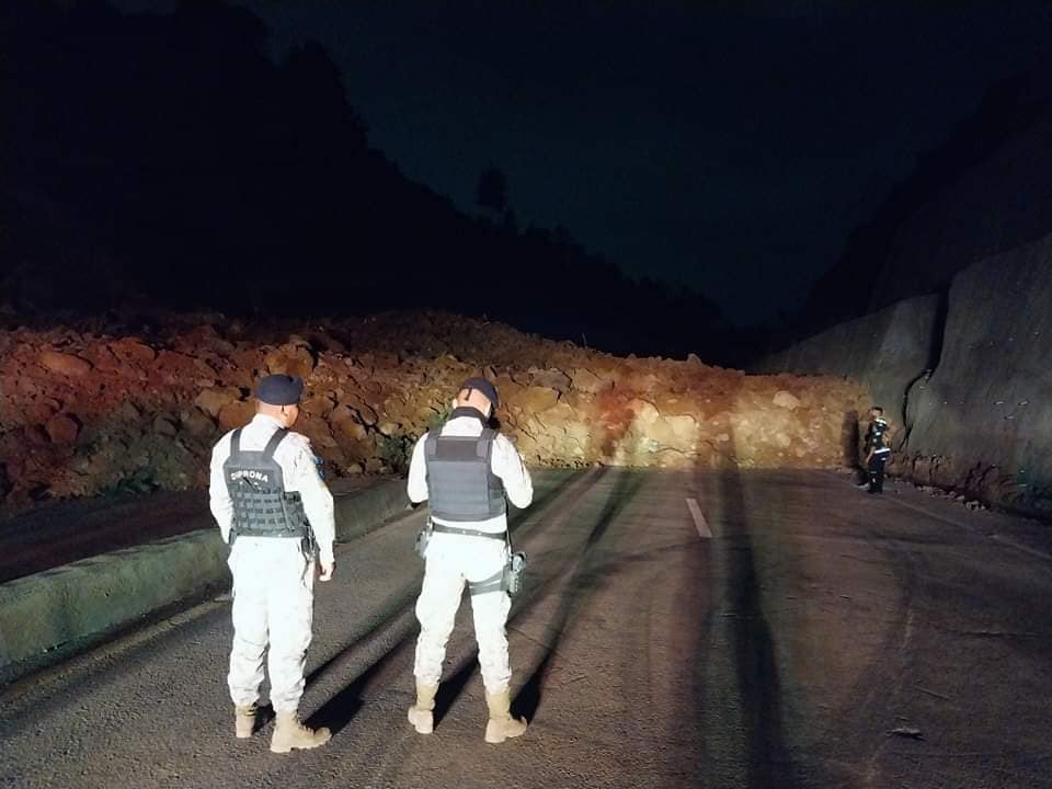 En kilómetro 60 libramiento de Chimaltenango se ha suscitado la noche de este Jueves Santo un derrumbe de grandes proporciones que tapa los cuatro carriles; Policía Nacional Civil Provial y Bomberos Voluntarios se encuentran en el lugar por tema de prevención.
