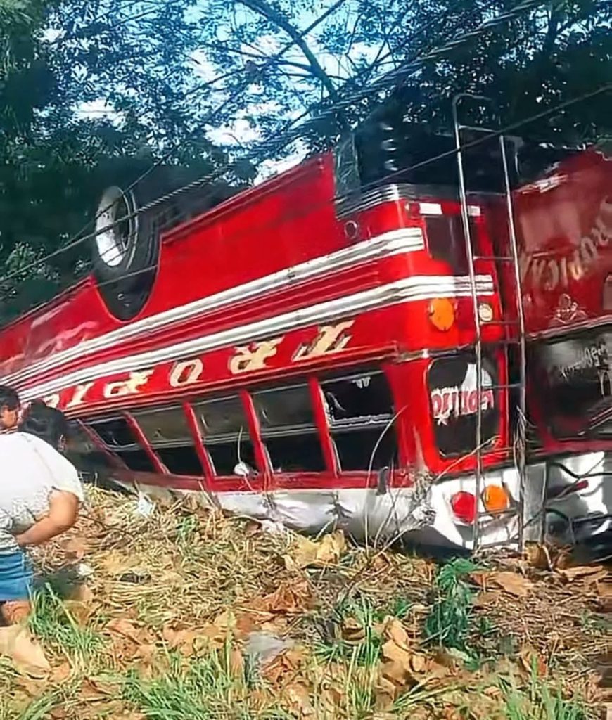 Hoy en la mañana se reportó un accidente tras el vuelco de un autobús de la Empresa Tropicana sobre la cinta asfáltica en la entrada de Siquinalá, Escuintla, preliminarmente se sabe que hay 2 fallecidos, varias personas atrapadas y heridos. Unidades se rescate ya se dirigen al lugar.
