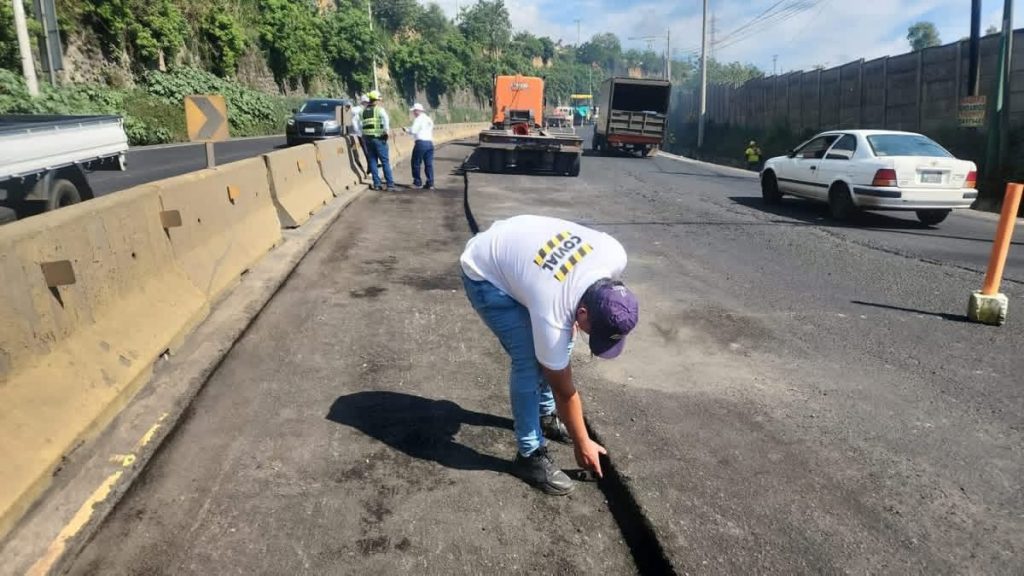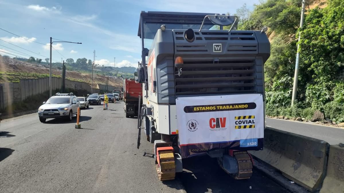 Si se conduce hacia la Ciudad Capital esta mañana tome en cuenta que maquinaria de la Unidad de Conservación Vial COVIAL del Ministerio de Comunicaciones realiza el cambio de la capa asfáltica que está dañada frente al basurero de Amsa jurisdicción de Villa Nueva por lo que solo está disponible un carril.