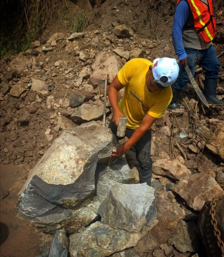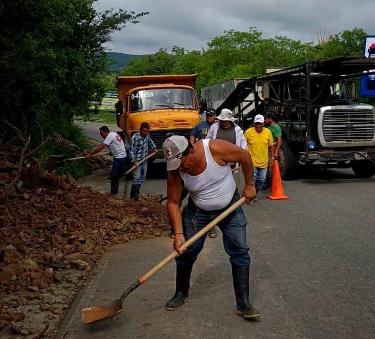 Personal de dicha zona realizan esta tarde trabajos de limpieza y remoción de material para garantizar el paso seguro de los usuarios.