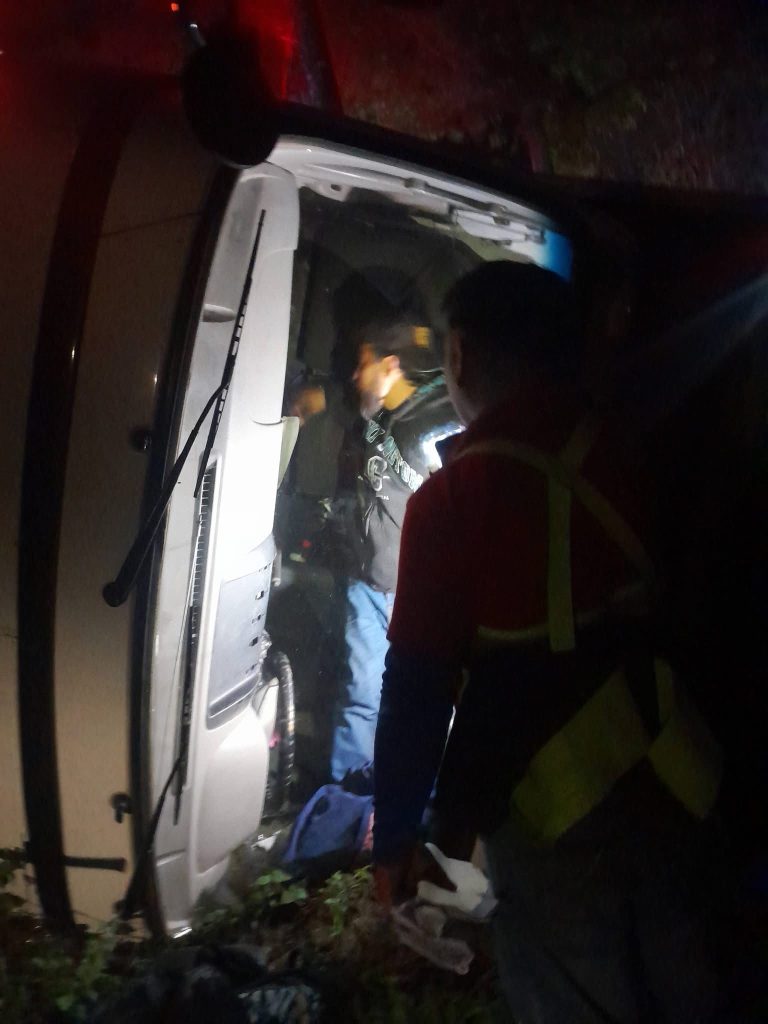 Los bomberos municipales departamentales auxiliaron tres personas con crisis nerviosa siendo Rigo Morales de 26 años originario de Chimaltenango, Jesús Lopez de 28 años de San Lucas Sacatepéquez y Henry Perez de 29 años Originario de Saragoza quien piloteaba el camión