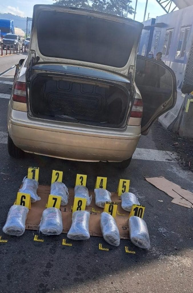 La captura de Molina de 51 años, es porque en el baúl del automóvil P-794DZV marca Volkswagen, llevaba 10 paquetes con mariguana con un peso aproximado de 23.9 libras, lo cual tiene un avalúo de 8 mil 962.5 quetzales, droga que fue embalada y trasladada a las bodegas de SGAIA en la zona 6.