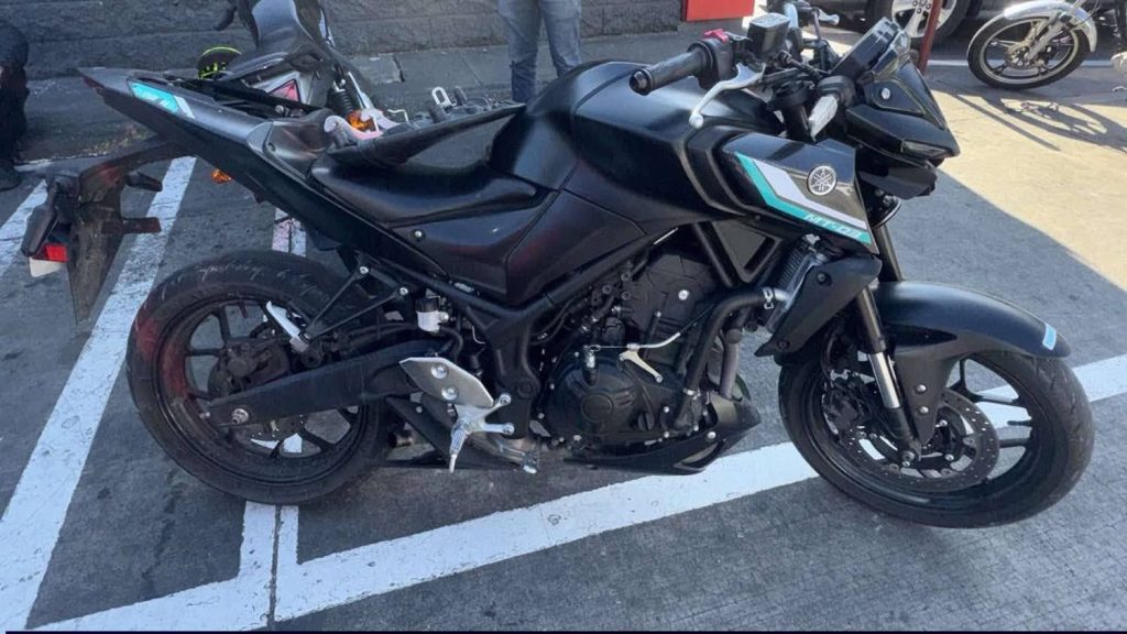 El detenido llegó a bordo de la motocicleta Yamaha, con placa de circulación cambiada, M-857HZZ, con el número de chasis y de motor alterados.