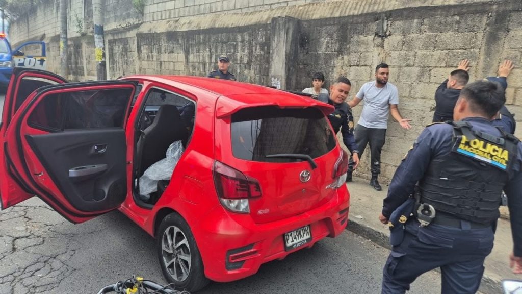 Al percatarse de la presencia policial, los sospechosos intentaron huir a bordo del automóvil Toyota, P-149KPN, color rojo. No obstante, fueron interceptados y neutralizados por los policías. Durante la inspección al vehículo, se localizó una mochila que contenía una computadora portátil, tres celulares, una batería portátil y un reloj, lo incautado tendría un valor aproximado de Q40 mil.