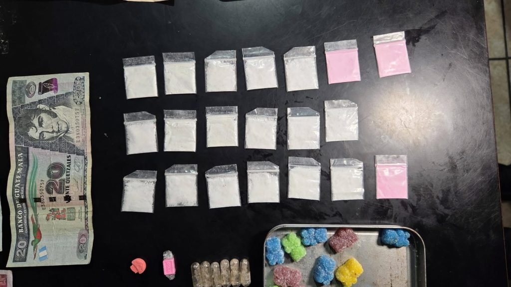 Agentes de la Policía Nacional Civil PNC capturaron a Erick Batz, de 50 años, en el bar «Sublime» San Pedro La Laguna, Sololá, porque en una bolsa de su chumpa llevaba variedad de drogas, 20 bolsas transparentes de Tusoquetamina, 06 cápsulas de MDMA, 02 pastillas de Éxtasis, 13 LSD con presentación de osos de goma, un teléfono celular y Q.770.