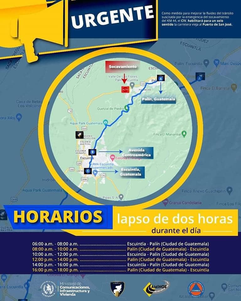 De acuerdo con la publicación del Ministerio de Comunicaciones, Infraestructura y vivienda esta decisión la han tomado para mejorar la fluidez de los vehículos por el cierre de la autopista Palín-Escuintla.