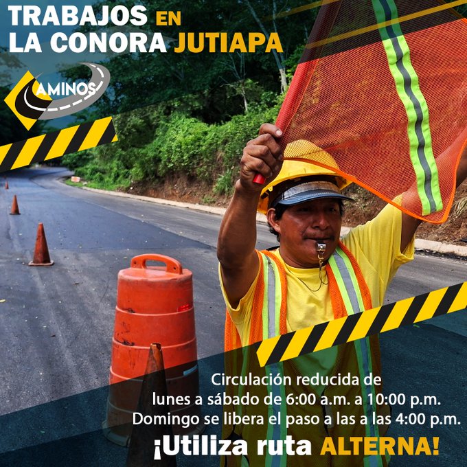 El Ministerio de Comunicaciones, Infraestructura y Vivienda (CIV) instó a la población que transita por la carretera CA-1 Oriente, específicamente en el sector de La Conora, Jutiapa, a tomar precauciones debido a los trabajos de ampliación del tramo a tres carriles. El paso vehicular en la zona puede tornarse lento, especialmente los viernes por la tarde y domingos, cuando se incrementa el flujo de automóviles.