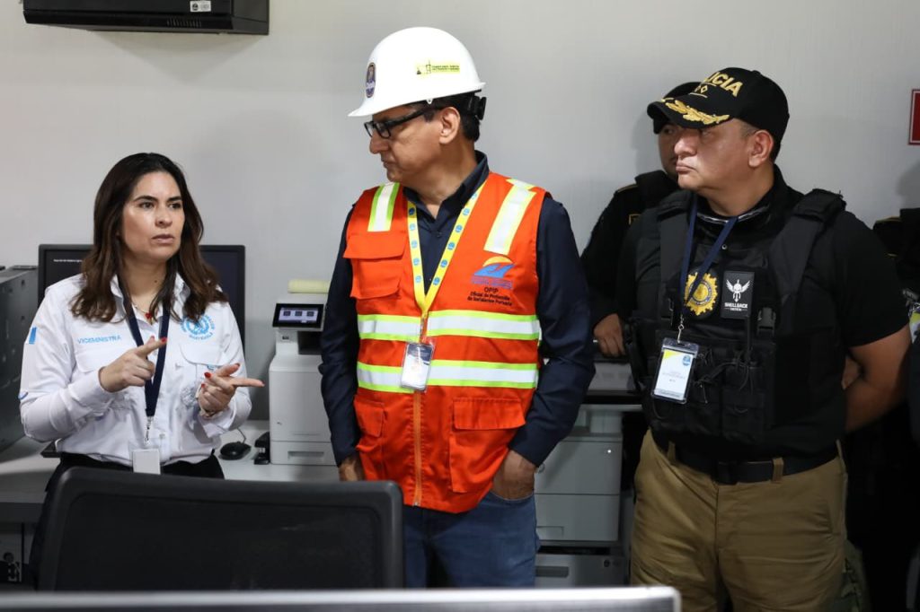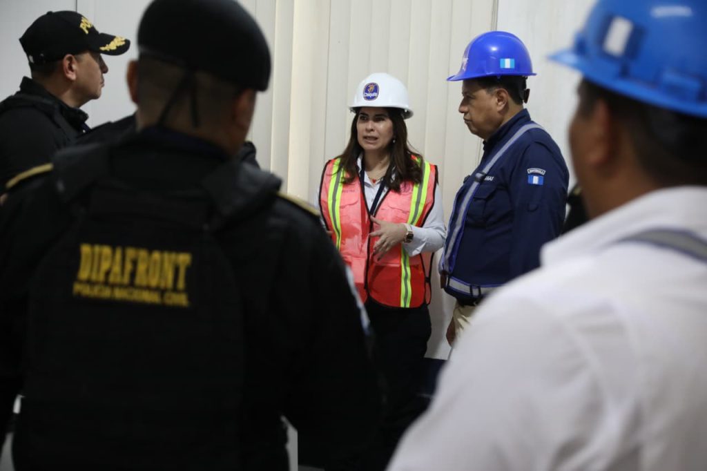 Como parte de su agenda, también se trasladó a los patios de maniobra donde se movilizan los contenedores, verificando de primera mano el despliegue de la Policía Nacional Civil (PNC).