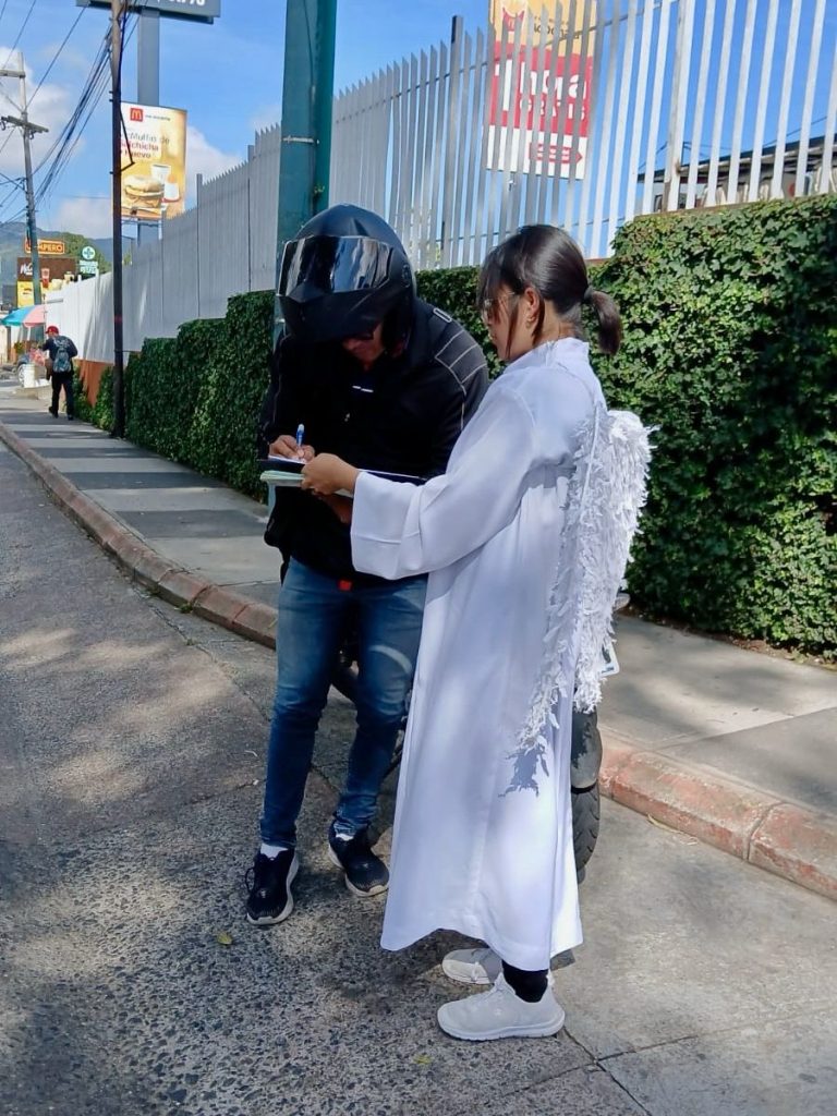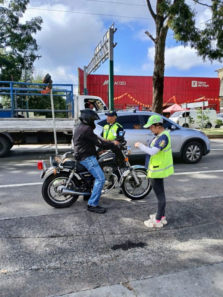 Esta actividad está a cargo de la Policía Municipal de Tránsito (PMT) en coordinación con el proyecto de Servicio Cívico del Departamento de Tránsito de la Policía Nacional Civil (PNC).
