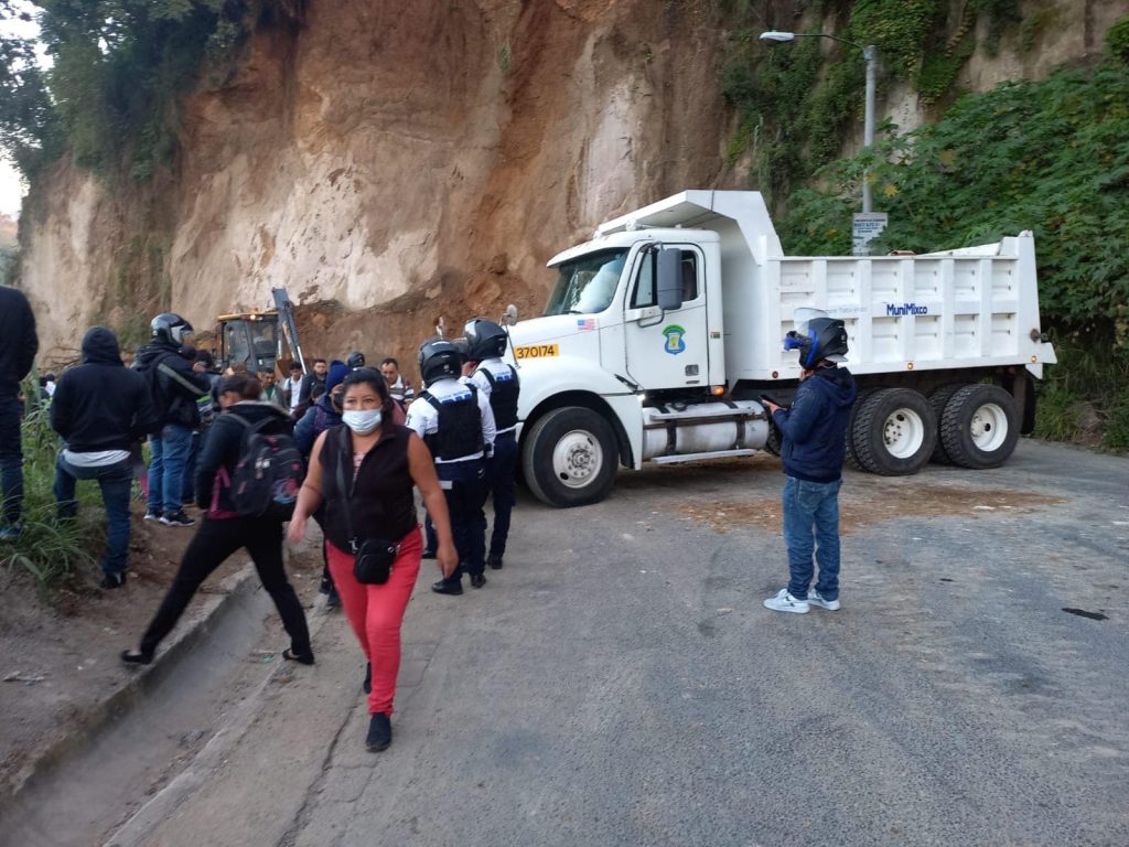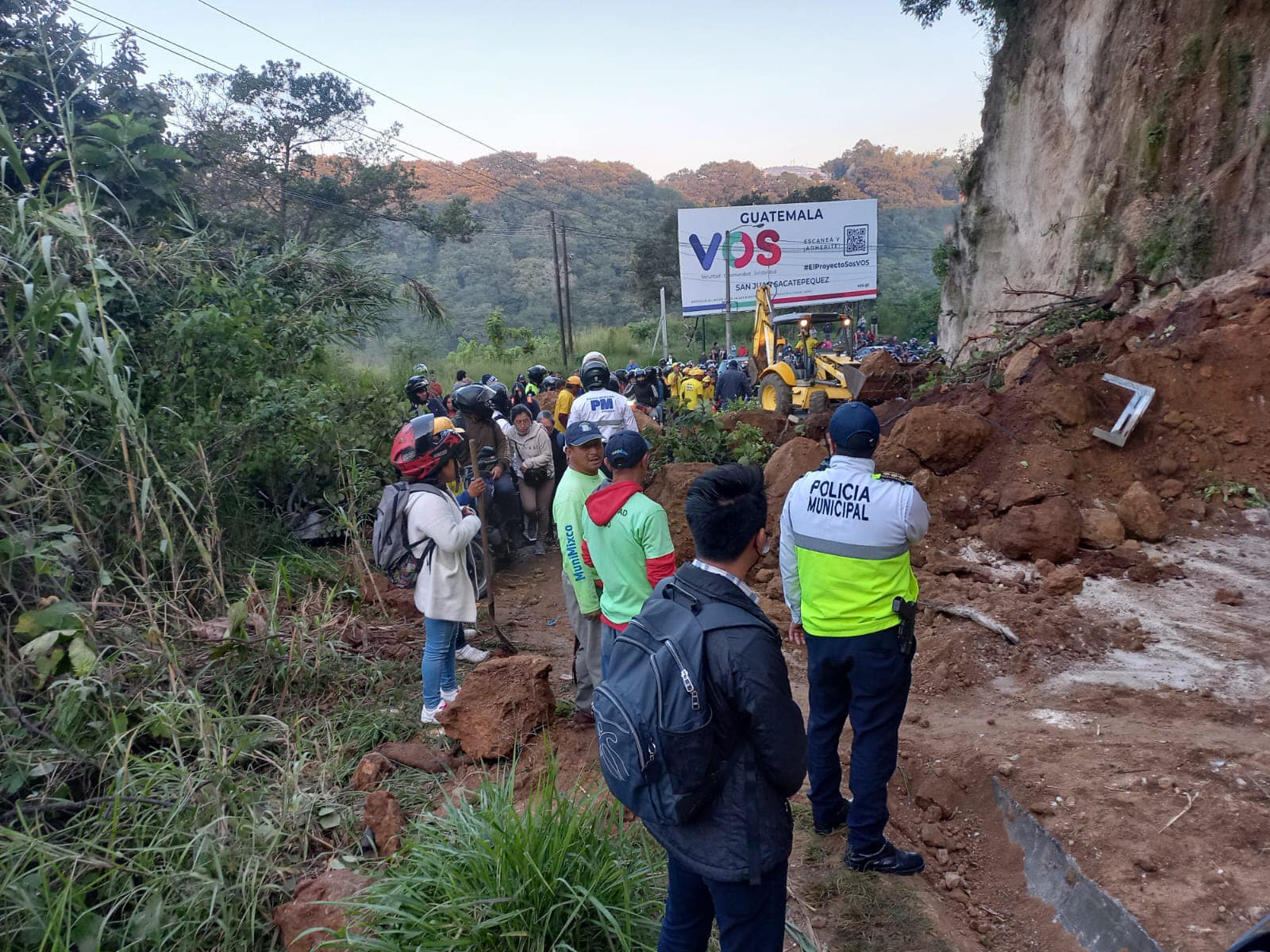 RUTA A CIUDAD QUETZAL…Maquinaria de la municipalidad de Mixco continua trabajando para poder habilitar toda la vía en kilometro 18 ruta a Ciudad Quetzal solo hay habilitada una vía con paso parcial y las autoridades piden paciencia.