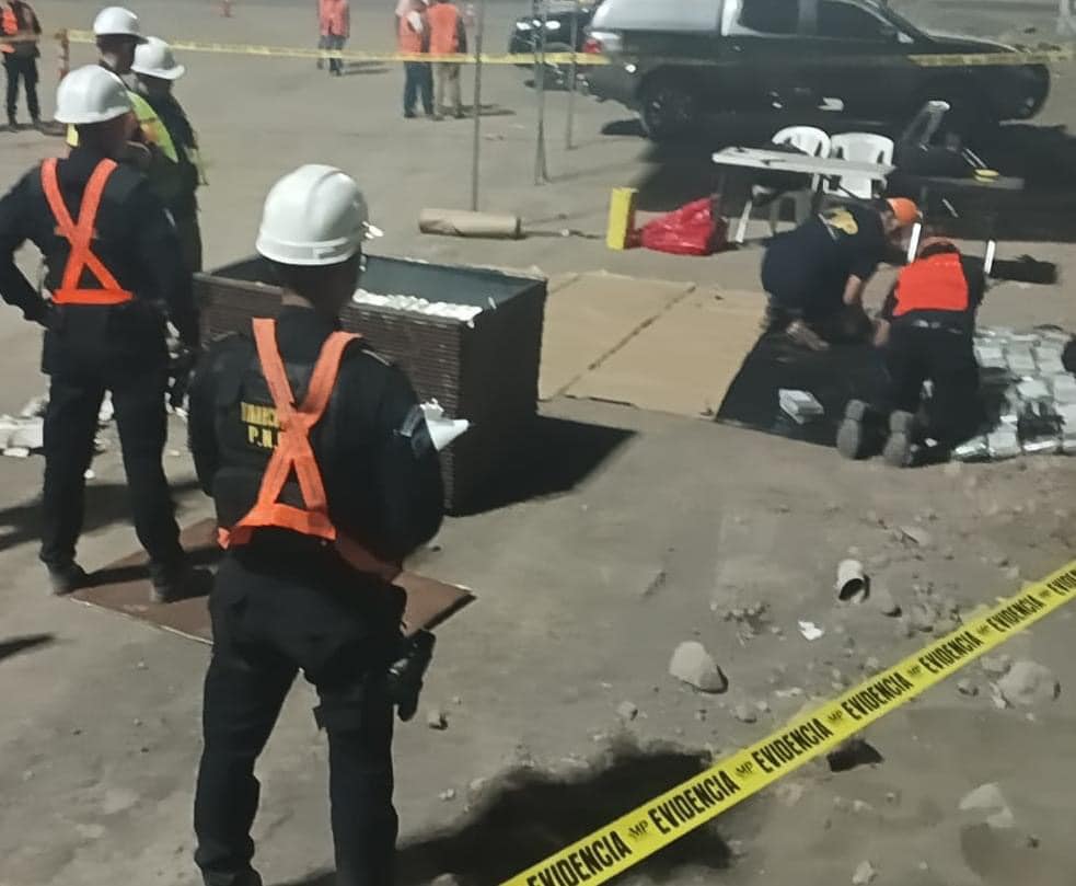 Las fuerzas Antinarcoticas SGAIA realiza inspección de un contenedor procedente de Costa Rica en las instalaciones de la terminal portuaria en puerto San José Escuintla, en donde se han confiscado varios kilos de droga.