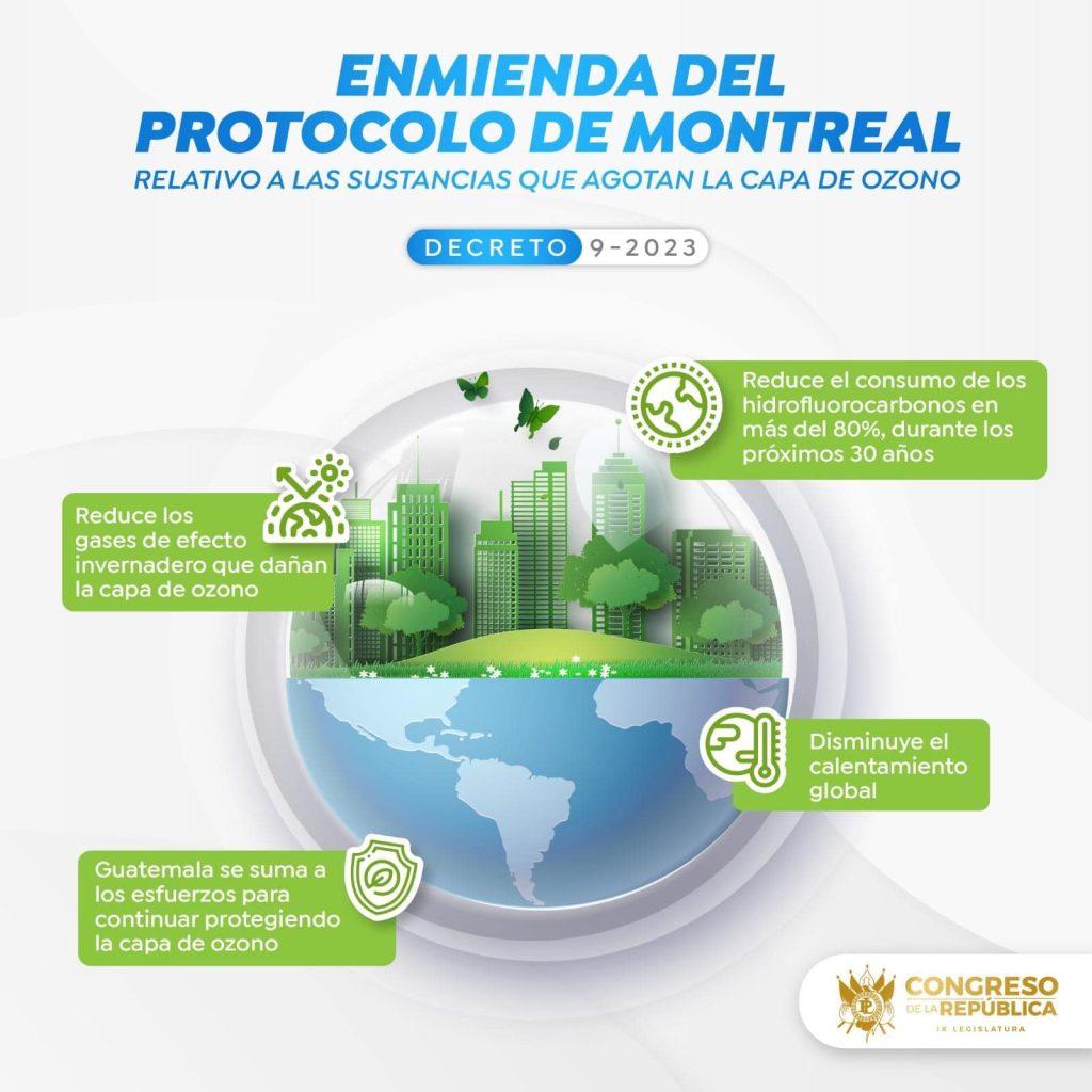 El Congreso de la República, presidido por la diputada Shirley Rivera, tuvo este miércoles una plenaria productiva con el avance de varios proyectos de ley y la aprobación del Decreto 9-2023 Enmienda del Protocolo de Montreal enfocado en la protección de medio ambiente e impulsar el desarrollo sostenible.