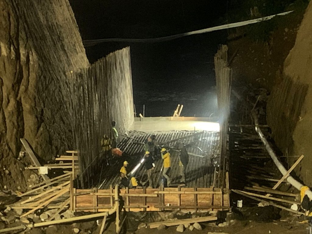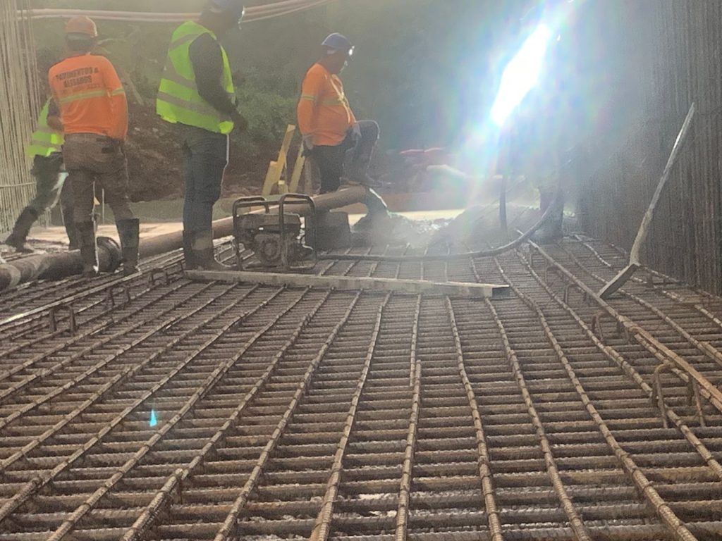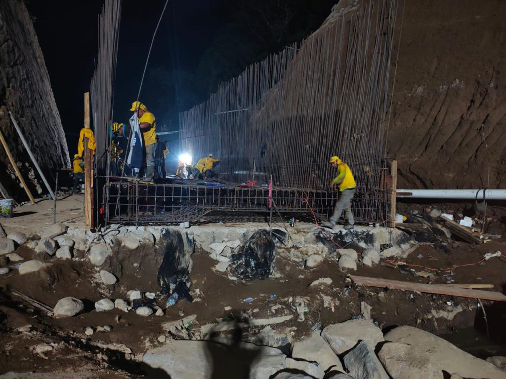 Una vez que concluya la fundición de la bóveda se continuará con el relleno estructural para nivelar la carretera. Asimismo, se contempla la construcción de muros de gaviones para proteger la carretera de nuevos colapsos.