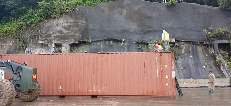 Actualmente, además de la limpieza, los trabajos se concentran en la instalación de una barrera de contención de 72 metros dentro del predio mediante contenedores de carga que se rellenarán con más de 550 metros cúbicos de roca con el propósito de retener el material que continúe desprendiéndose.