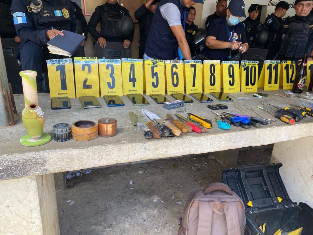7 mil 500 quetzales, 13 celulares, 82 chips, marihuana, cervezas y licor, fue lo incautado por Policía Nacional Civil, luego de una requisa que se realizó en sectores del Centro de Rehabilitación Penitenciaria de Puerto Barrios, Izabal en coordinación con la fiscalía.