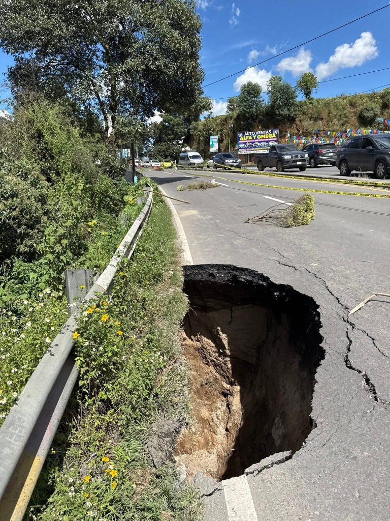 Un hundimiento se a producido por las lluvias a la altura del Kilómetro 212 -213 en la carretera que conduce a San Juan Ostuncalco, Quetzaltenango