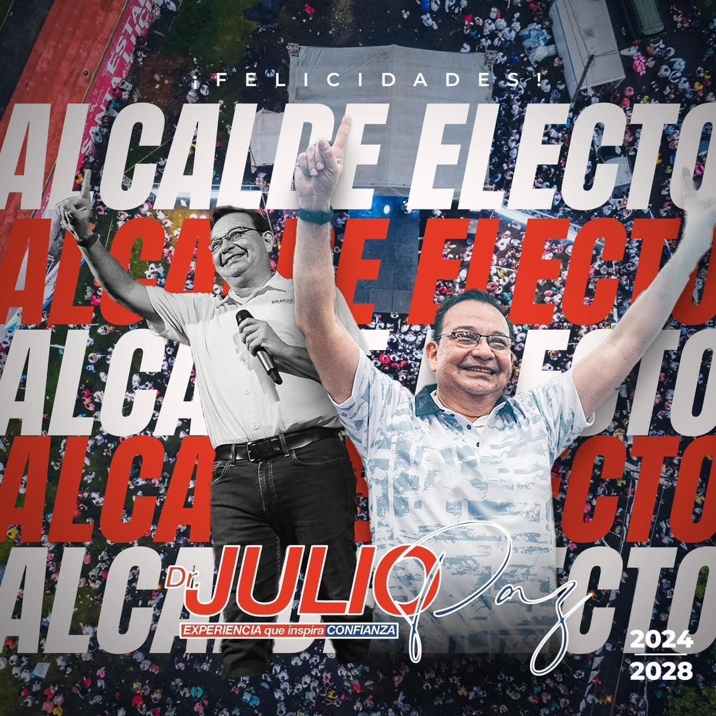 El doctor Julio Paz es el alcalde electo en el pujante municipio Santa Lucía Cotzumalguapa al tener una contundente triunfo con el 23.9% de los votos emitidos que hacen preliminarmente 9 mil 763 vecinos que votaron por el cambio