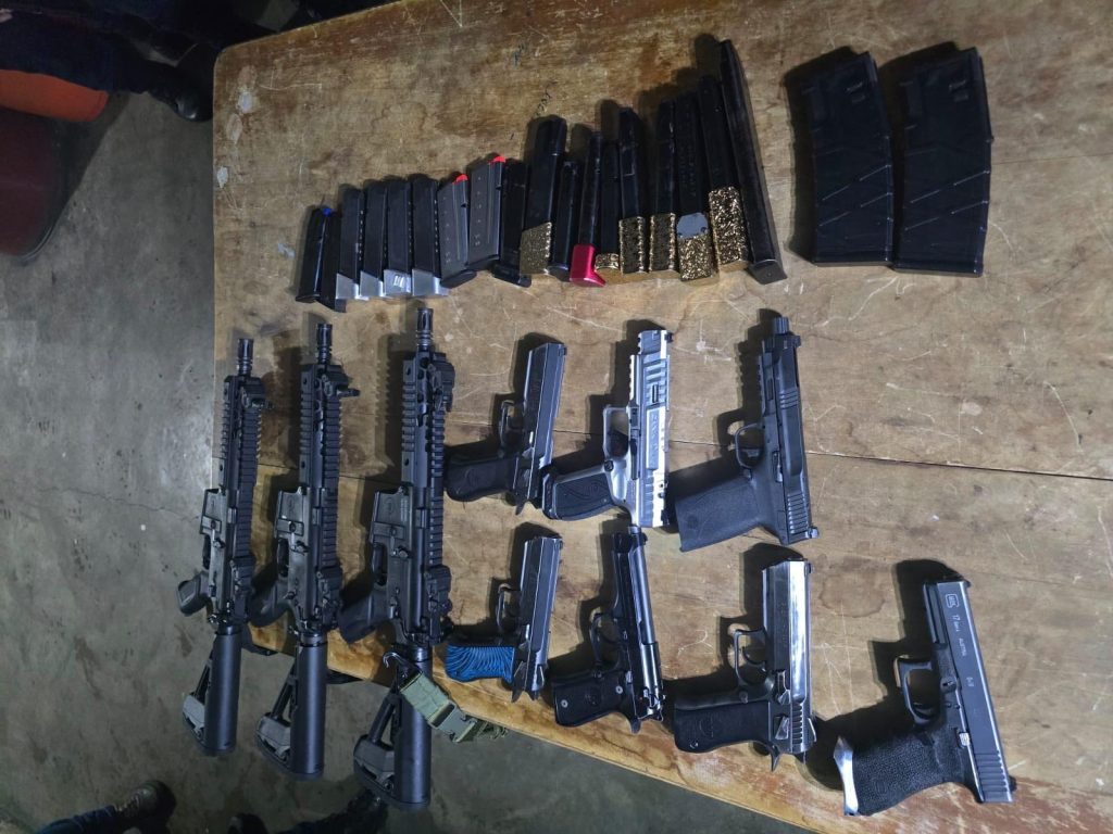 Tras las características dadas, agentes de la PNC inmediatamente iniciaron su localización, interceptando a los presuntos responsables a quienes se les incautaron siete pistolas calibre 9mm, tres carabinas y 22 cargadores, todas con su documentación.