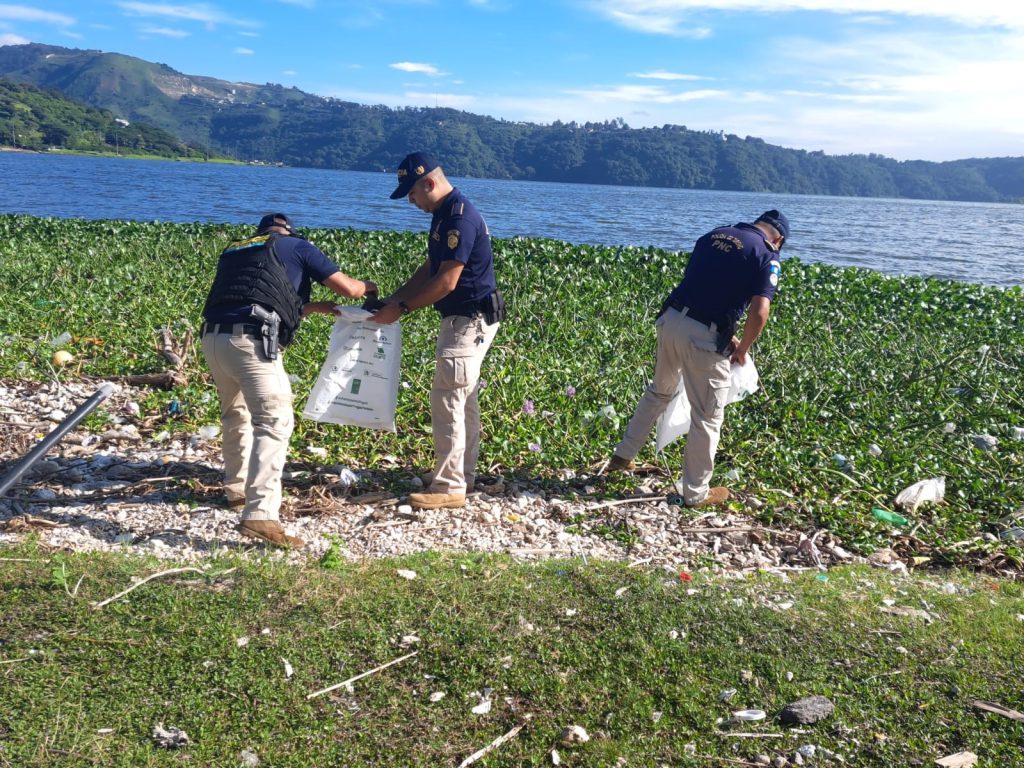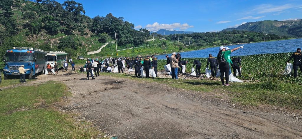 Este sábado, en una coordinación interinstitucional se llevó a cabo una jornada de limpieza en el lago de Amatitlán, al sur de la capital.
