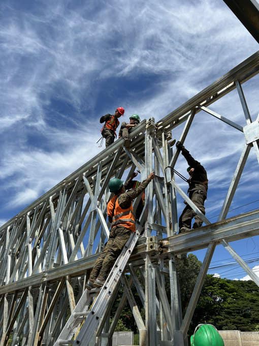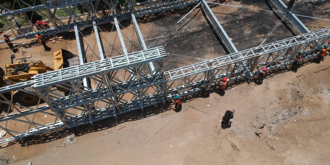 El Ministerio de la Defensa Nacional (Mindef) a través del Ejército de Guatemala, reporta un 52 % de avance de los trabajos de ensamblaje y lanzamiento del puente modular temporal en el kilómetro 17.5 de la ruta al Pacífico.