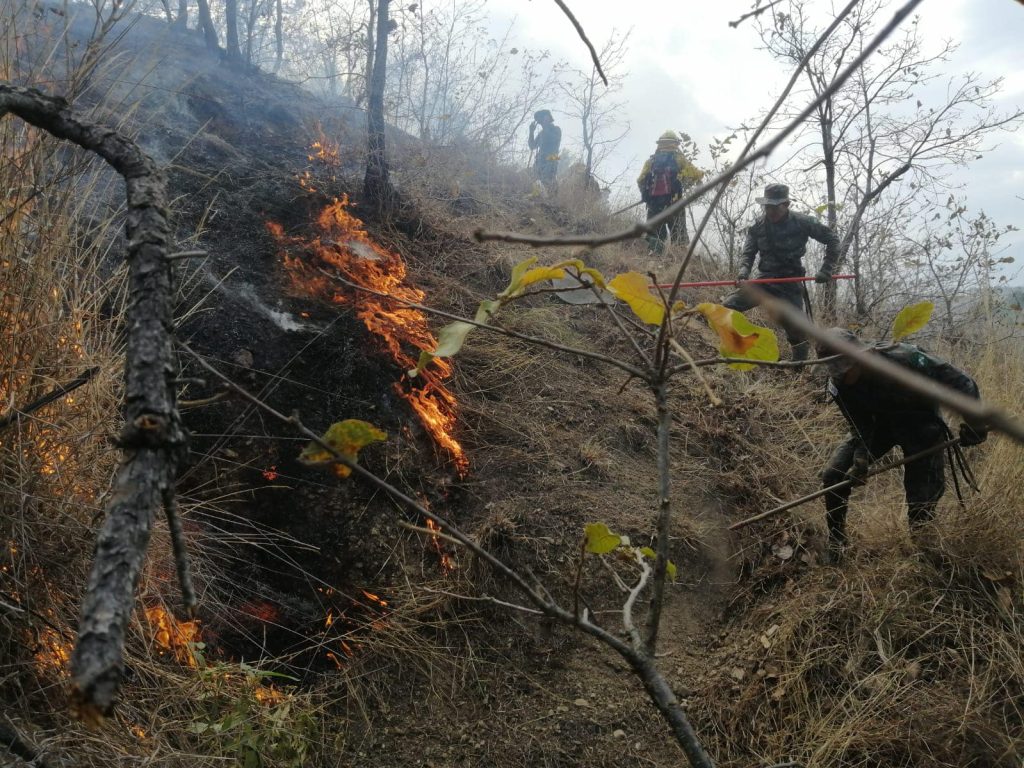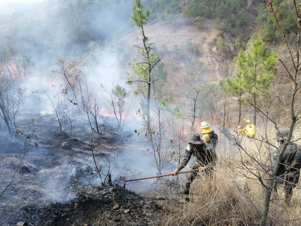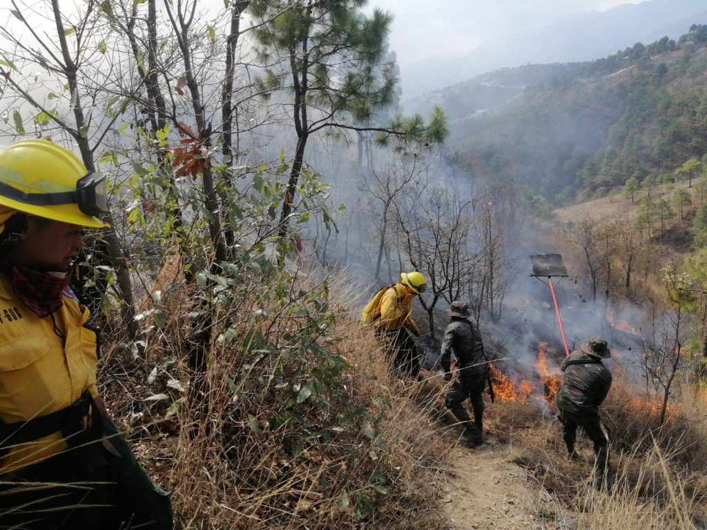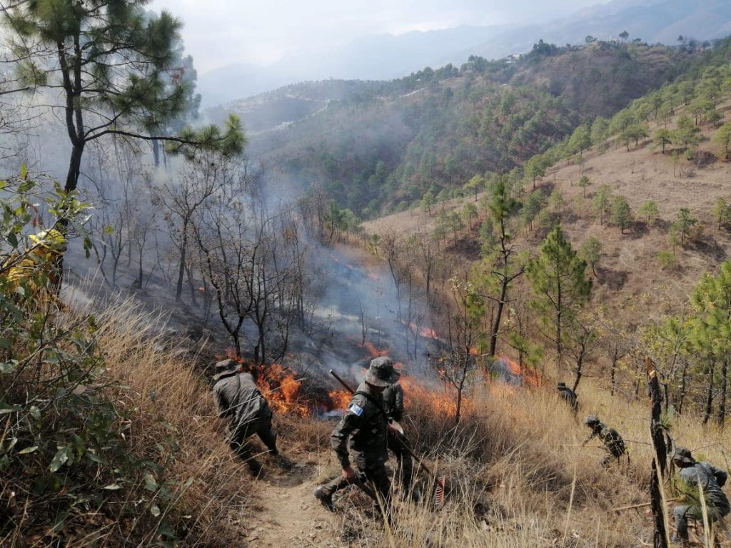 EN HUEHUETENANGO…El ejército a través de la Quinta Brigada de Infantería apoyó la tarde de este jueves a la Conred y comunitarios, en el sofocamiento de un incendio forestal suscitado en el caserío Cerro Alto, zona 4, Huehuetenango.