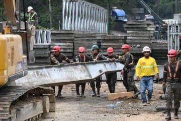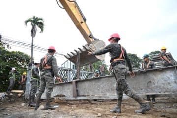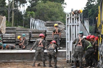 En el lugar se cuenta con el apoyo de autoridades de Tránsito y del Ministerio de Comunicaciones, Infraestructura y Vivienda (CIV) por medio de la Unidad Ejecutora de Conservación Vial (Covial). También trabajan en el lugar elementos del Cuerpo de Ingenieros del Ejército de Guatemala y personal de la empresa contratista.