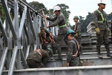 Este domibgo el cuerpo de ingenieros del Ejército continuaron con los trabajos de desmontaje del puente temporal en el kilómetro 17.5 ruta CA-9 Sur, al Pacífico, en Villa Nueva.