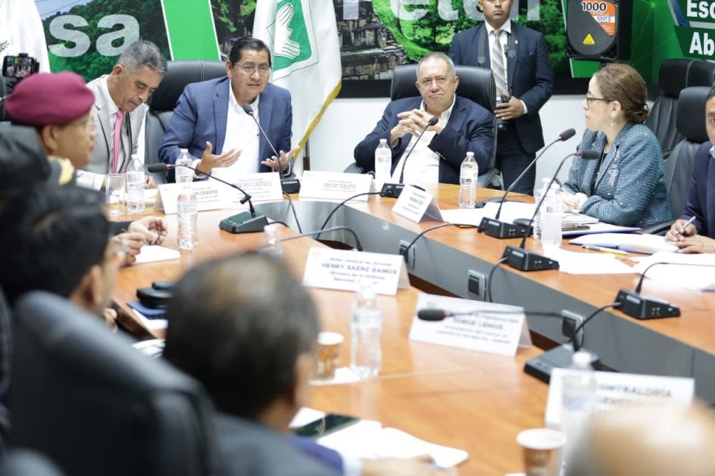Los diputados José Inés Castillo y Julio Marroquín, jefe y subjefe del bloque -UNE-, respectivamente, acompañados por los parlamentarios distritales por Alta Verapaz, Oscar Corleto y Victor Cifuentes, llevaron a cabo una reunión de seguimiento con el ministro Henry Zaenz y otras autoridades del -Mindef-, así como con funcionarios del -CIV-, -CGC-, representantes de la empresa constructora Concay S.A. encargada del proyecto carretero de la RN-5 de Campur a Fray Bartolomé de las Casas en el referido distrito. A la actividad también asistieron comunitarios de la región.