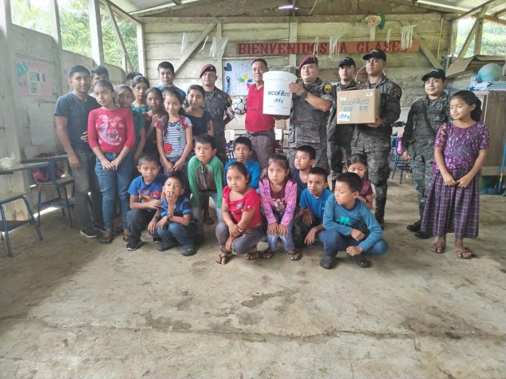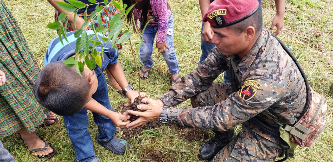 EN PETEN…El Ejército de Guatemala a través de la Brigada de Fuerzas Especiales, realizó una jornada médica, siembra de árboles y entrega de ecofiltros, a los alumnos de la Escuela Oficial Mixta del caserío El Limón, en la linea de adyacencia con Guatemala-Belice.