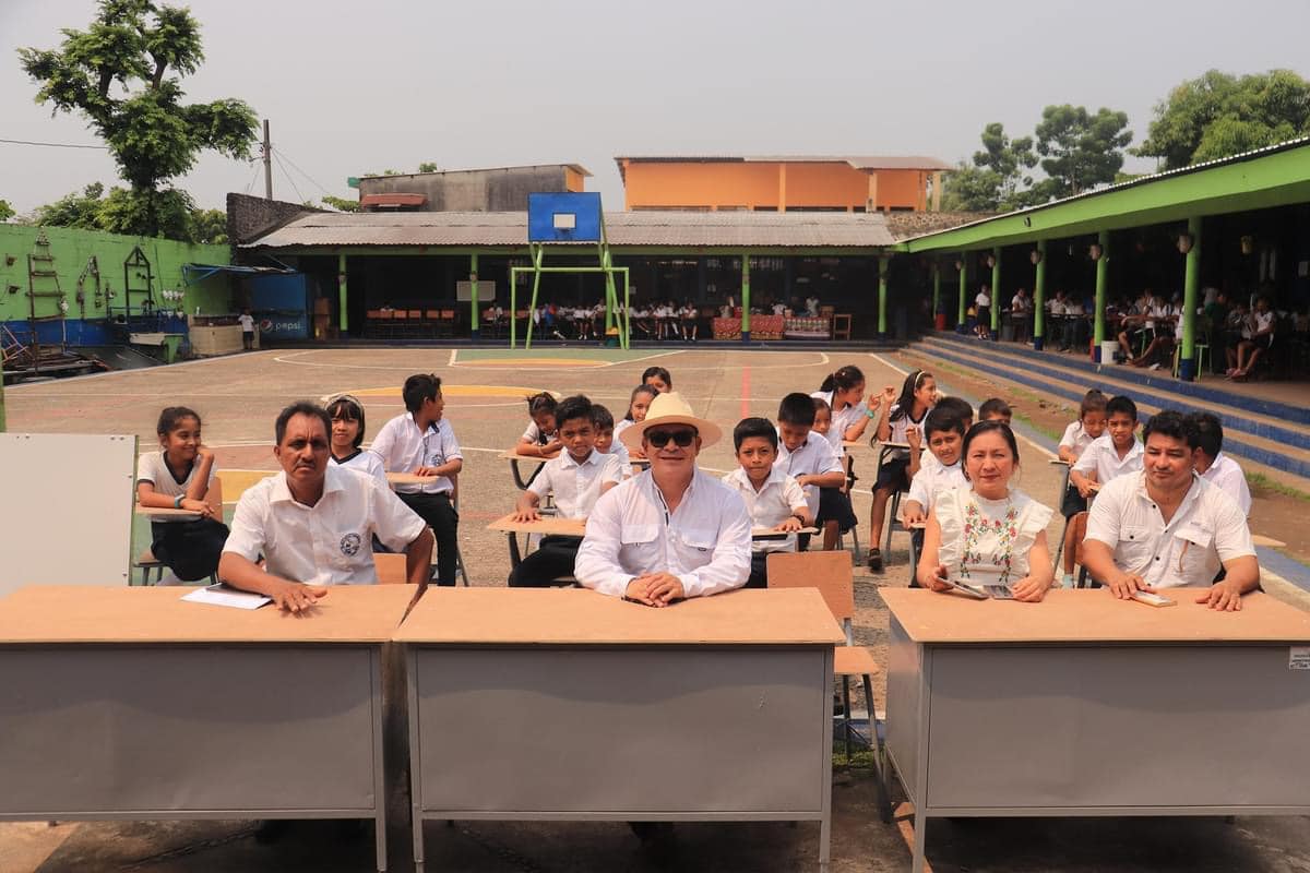 El diputado distrital de Suchitepéquez Vasny Maldonado Alonzo -UNE- verificó la entrega de mobiliario en las escuelas Rafael Moreira y Dolores Bedoya ubicadas en Santo Domingo, Suchitepéquez.