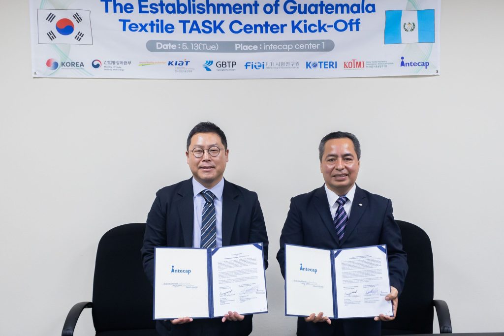 El Instituto Técnico de Capacitación y Productividad (INTECAP) y el Instituto Coreano para el Avance de la Tecnología (KIAT) unieron esfuerzos para impulsar la formación técnica especializada en Guatemala, gracias al establecimiento del nuevo Centro Textil TASK Guatemala a través de la firma del documento Registro de Discusiones (ROD), el cual oficializa esta cooperación y permite iniciar la ejecución del proyecto.