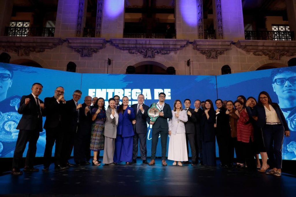 El acto se llevó a cabo en el emblemático Patio de la Paz del Palacio Nacional de la Cultura, escenario que fue testigo de un momento cargado de simbolismo. Ahí, el presidente Bernardo Arévalo entregó personalmente la distinción a Martínez, destacando no solo su logro deportivo, sino el impacto que ha generado en toda una nación.