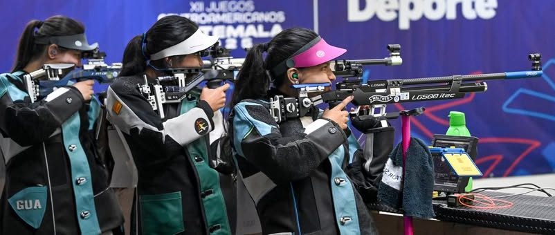 Guatemala se llevó la medalla de oro en la modalidad de rifle de aire de 10 metros por equipo femenino. El equipo nacional lo integran Polymaria Velásquez, Ingrid Vela y Elizabeth Rivas.