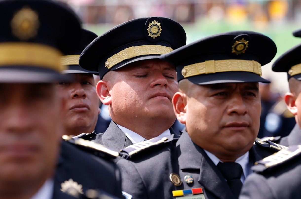 En total, 3 mil 729 agentes participaron en la ceremonia, conformada por nuevos agentes y elementos que completaron formación para ascensos y cursos de especialización.