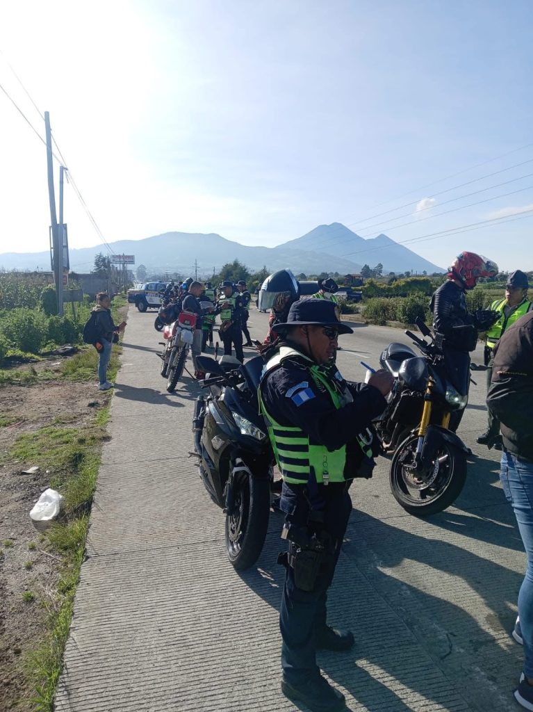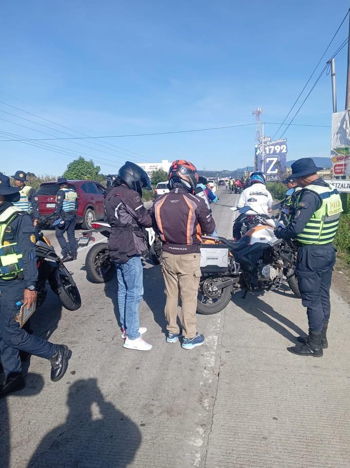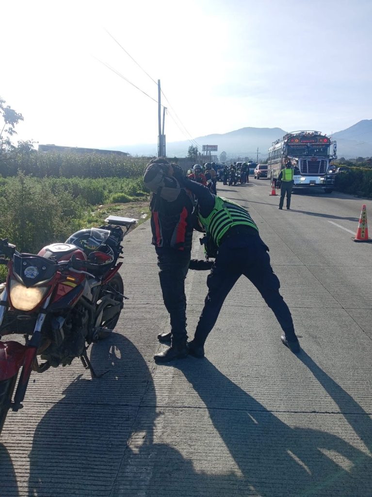 Mañana de domingo un operativo dirigido a motociclistas con el objetivo de prevenir accidentes viales y controlar los límites de velocidad permitidos en el kilómetro 72 CA-1 Occidente, en el municipio de Patzicía, en el departamento de Chimaltenango.