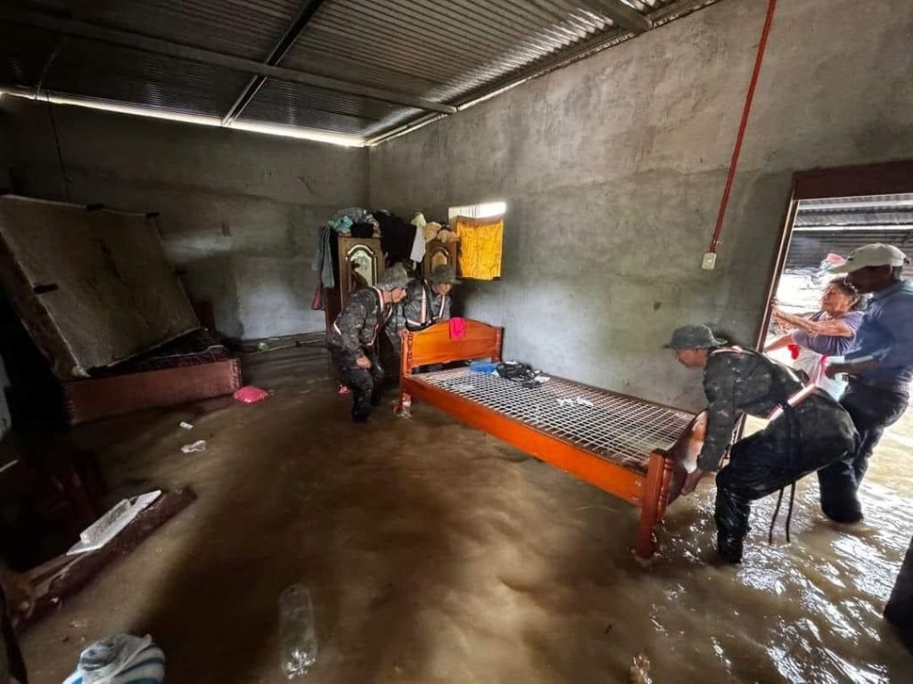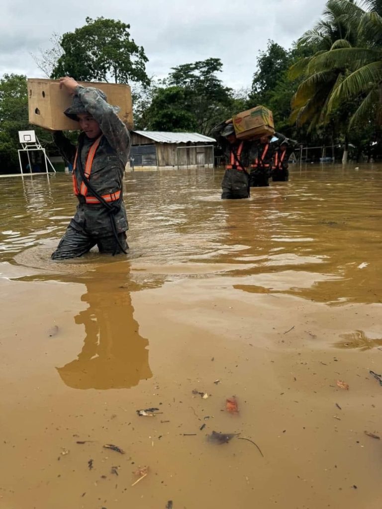 EN PETEN…La Brigada Especial de Operaciones de Selva del Ejército apoyó a la evacuación de personas afectadas por inundaciones en el Caserio Lagunitas, municipio de La Libertad, Petén.